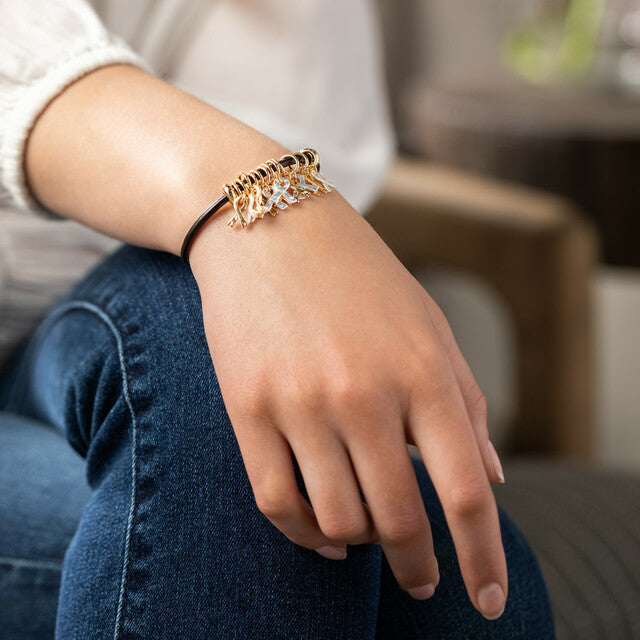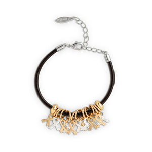 The delicate charms on these bracelets symbolize the importance of holding on to faith and love. Surprise someone you care for with the gift of a Ribbon Bracelet from Giving Collection that honors lasting friendship and inspires hope. Ribbon charms offer encouragement and support in a time of need. NEW clasp has an extender for just-right sizing. Features messaging on package that reads: “The ribbons on this bracelet represent the inner strength and the moments you or a loved one face with love and support.”